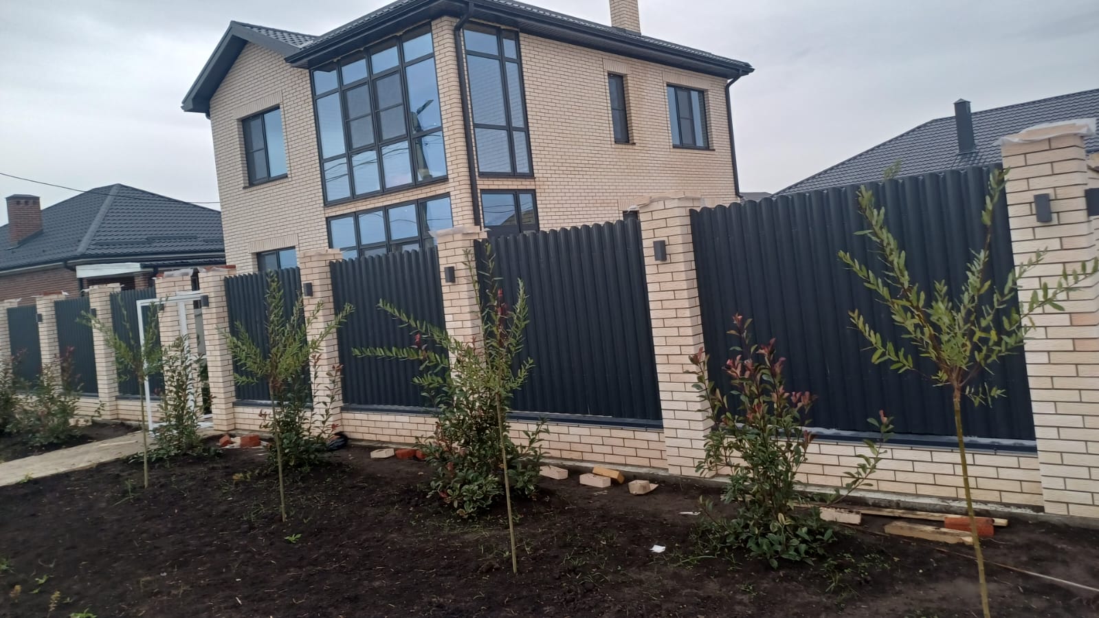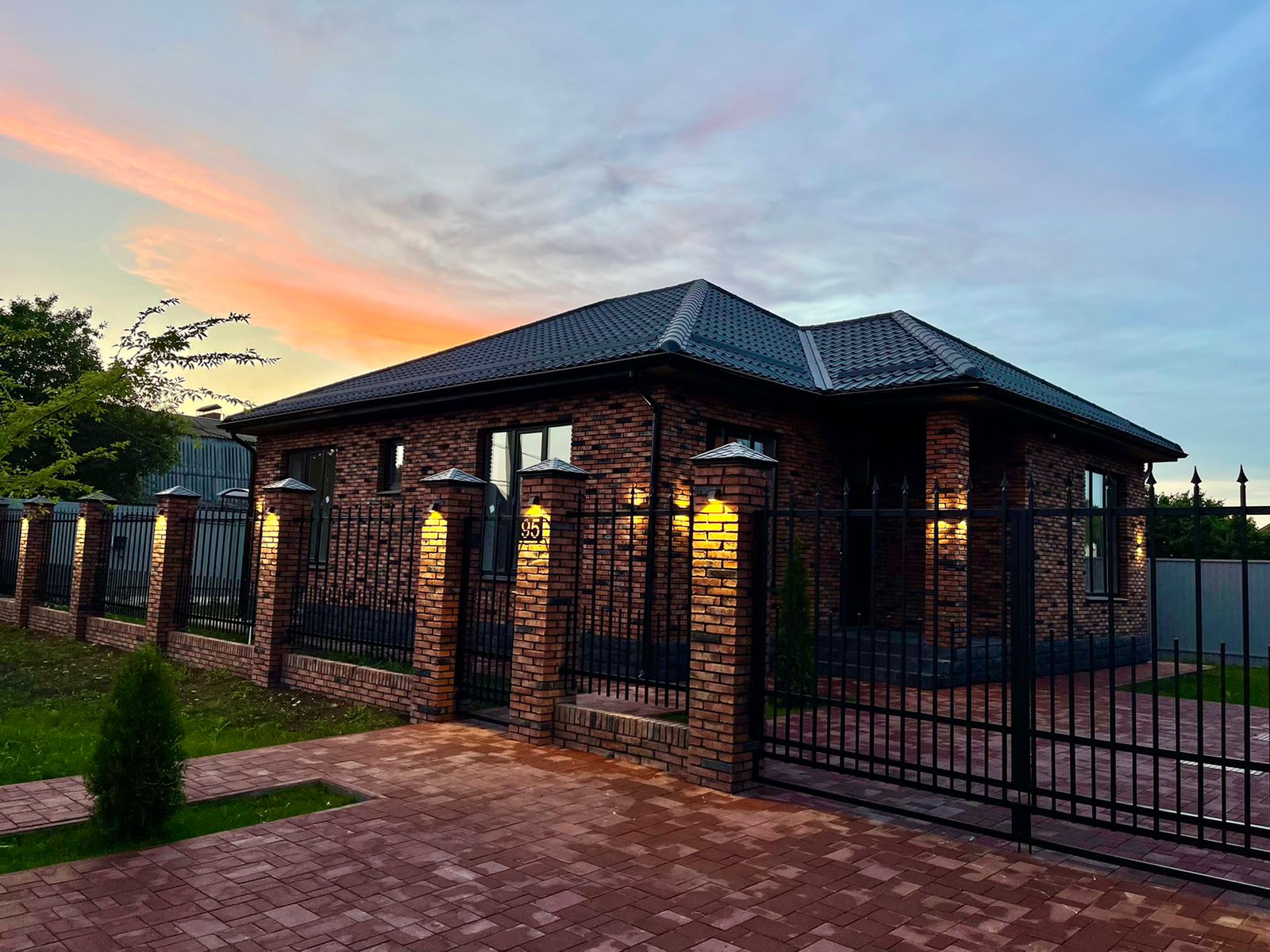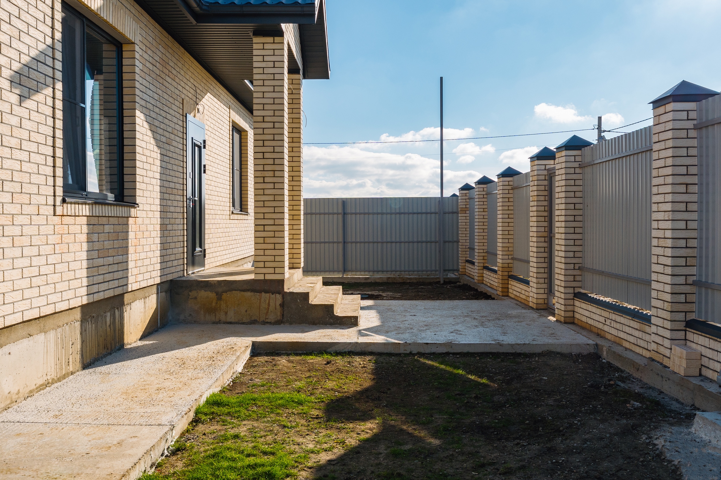 БЛАГОУСТРОЙСТВО территории: забор, бетонирование площадок и дорожек, подсветка.